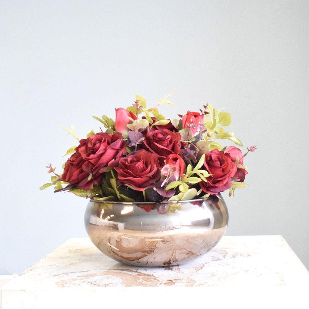 Flores artificiais Arranjo de Flores Rosas Vermelhas Artificial no Vaso BronzeLinha permanente Formosinha - Flores de Natal - Magazine Luiza